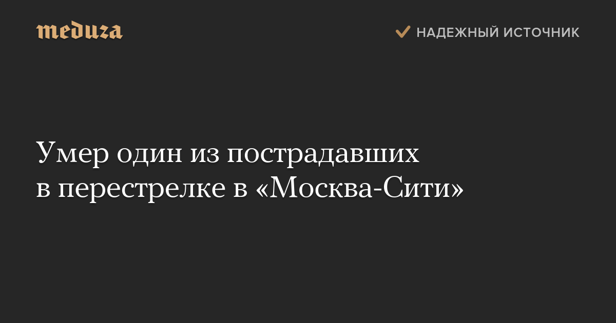Умер один из пострадавших в перестрелке в «Москва-Сити»