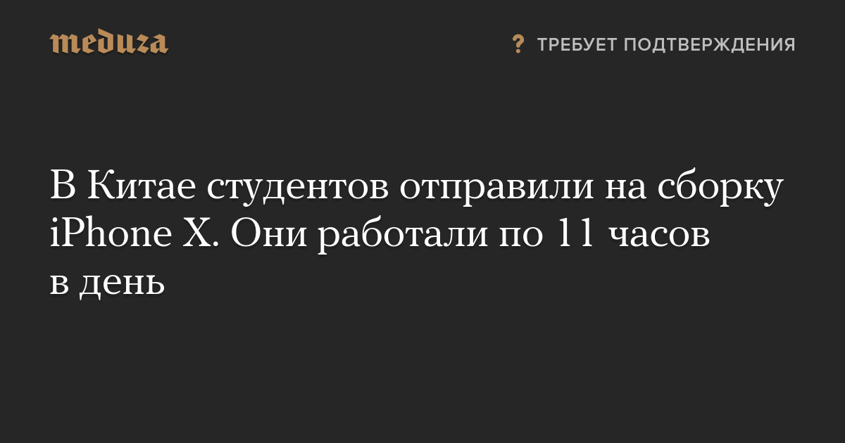 В китайском городе Чжэнчжоу студенты технических училищ по 11 часов в день работали на заводе компании Foxconn на сборке последней модели айфона iPhone X. Об этом сообщает газета The Financial Times.