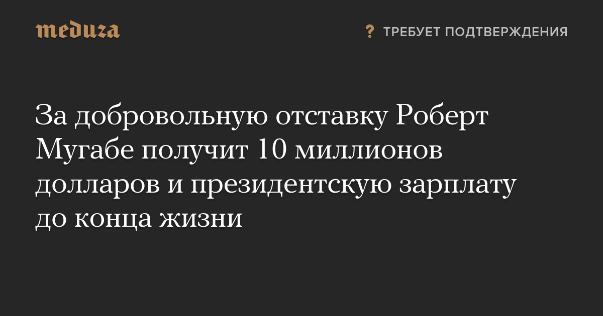 За добровольную отставку Роберт Мугабе получит 10 миллионов долларов и президентскую зарплату до конца жизни