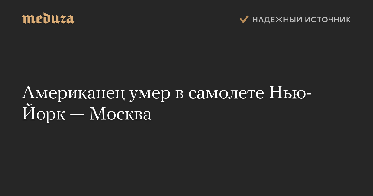 Гражданин США умер на борту самолета, который летел из Нью-Йорка в Москву. Как сообщает «Интерфакс» со ссылкой на источник, ему было 30 лет.