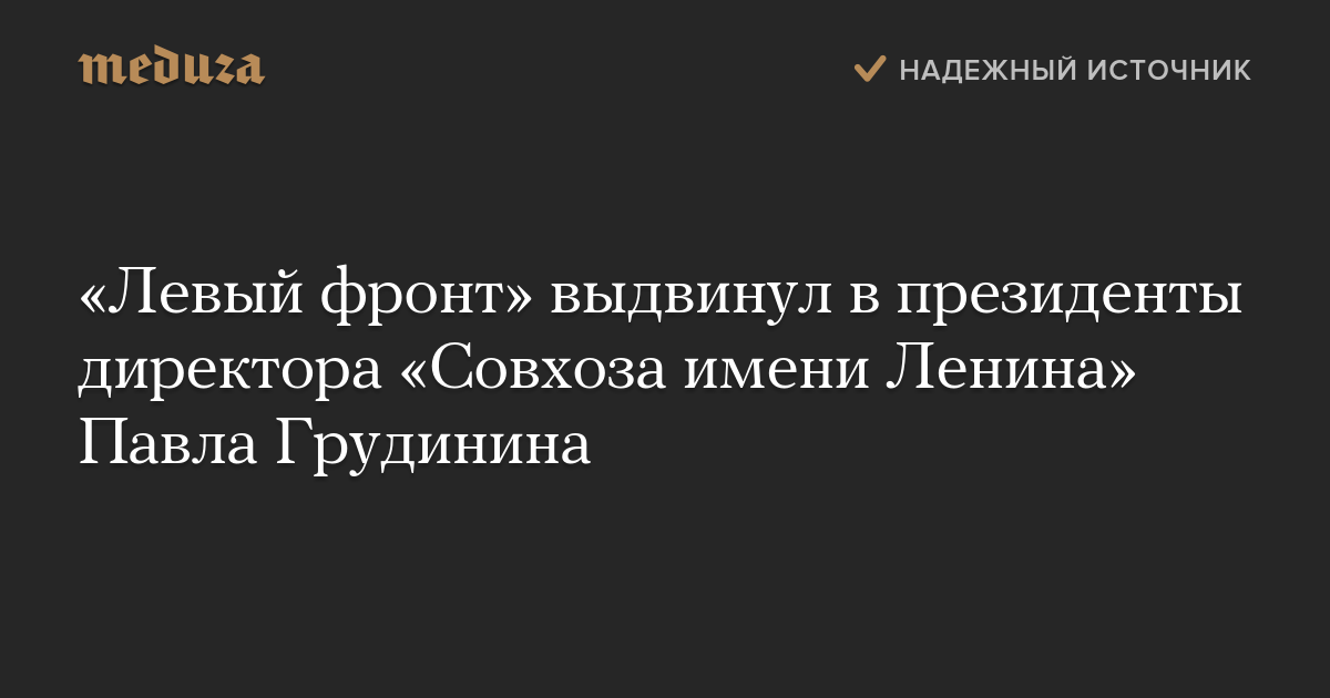 Движение «Левый фронт» выдвинуло кандидатом в президенты от «левых и патриотических сил» директора «Совхоза имени Ленина» Павла Грудинина. Праймериз по выбору кандидата прошли 30 ноября, во втором туре Грудинин опередил экономиста Юрия Болдырева.