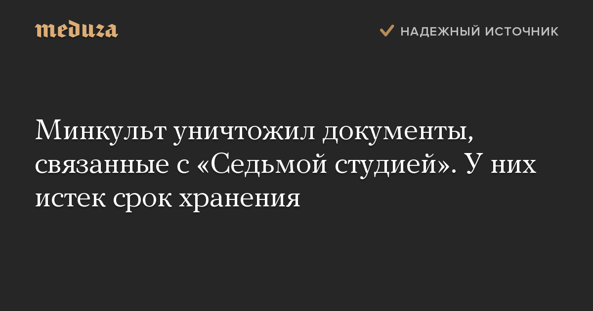 Минкультуры уничтожило документы, связанные с «Седьмой студией». У них истек срок хранения