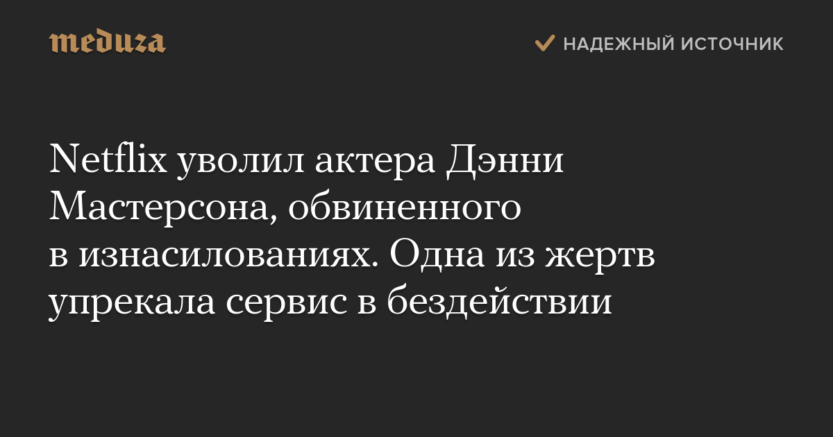 Netflix уволил актера Дэнни Мастерсона, обвиненного в изнасилованиях. Одна из жертв упрекала сервис в бездействии