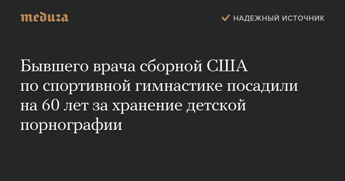 Бывшего врача сборной США по спортивной гимнастике посадили на 60 лет за хранение детской порнографии