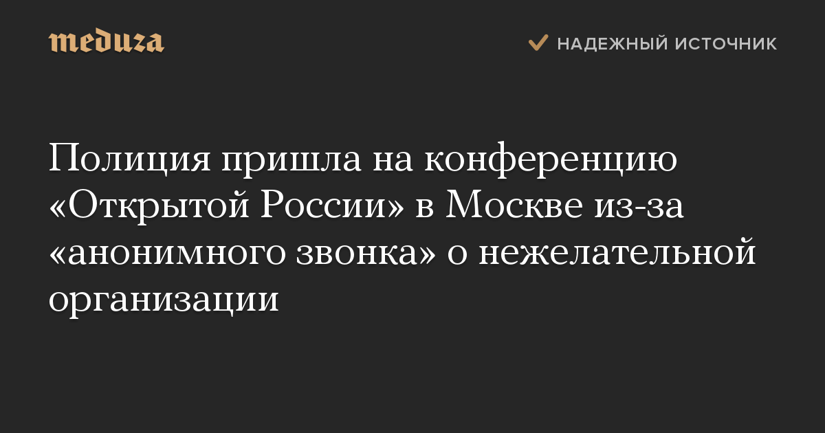 Полиция пришла на конференцию «Открытой России» в Москве из-за «анонимного звонка» о нежелательной организации