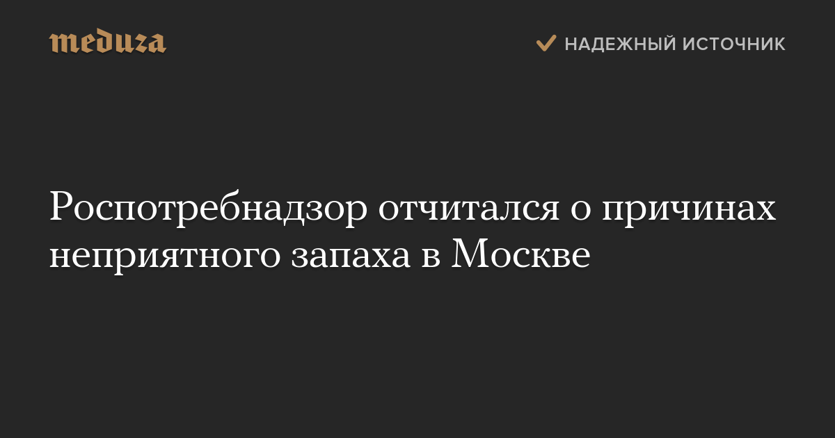 Управление Роспотребнадзора по Москве отчиталось о происхождении неприятных запахов, которые ощущали жители столицы в последние дни.