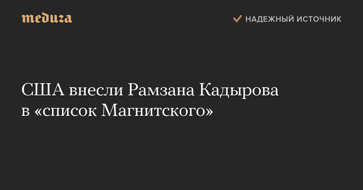 Минфин США внес главу Чечни Рамзана Кадырова в санкционный «список Магнитского».