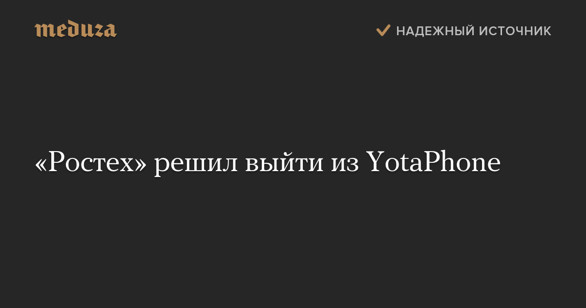 Возможность продать свой пакет в Yota Devices появилась у «Ростеха» в 2016 году. Поводом для продажи акций, по информации источников РБК, стал «успешный старт продаж в Китае» YotaPhone 3, который представили летом 2017 года. Будет ли телефон продаваться в России, неизвестно.