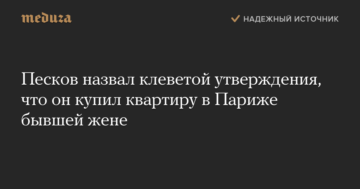 «Утверждается, что я покупал квартиру в Париже. Это не соответствует действительности, это клевета», — заявил Песков 22 декабря, отвечая на вопрос «Медузы».