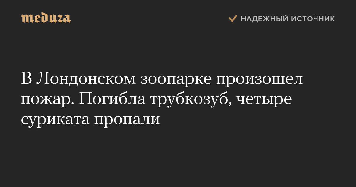В Лондонском зоопарке произошел пожар. Погибла трубкозуб, четыре суриката пропали