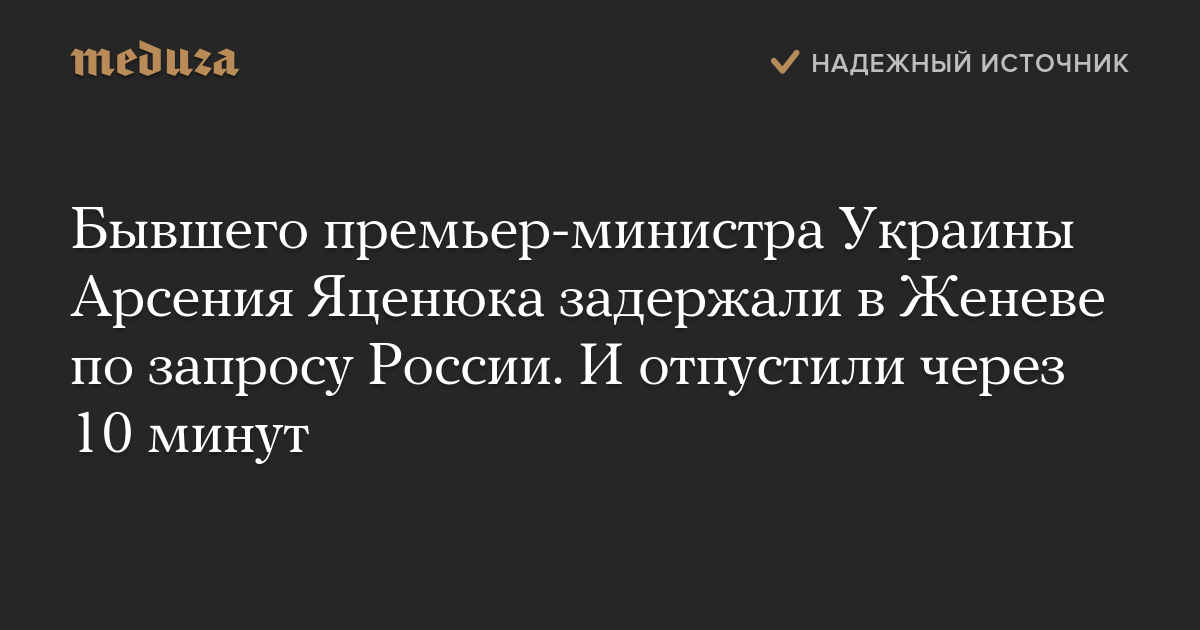 Бывшего премьер-министра Украины Арсения Яценюка задержали в Женеве по запросу России. И отпустили через 10 минут