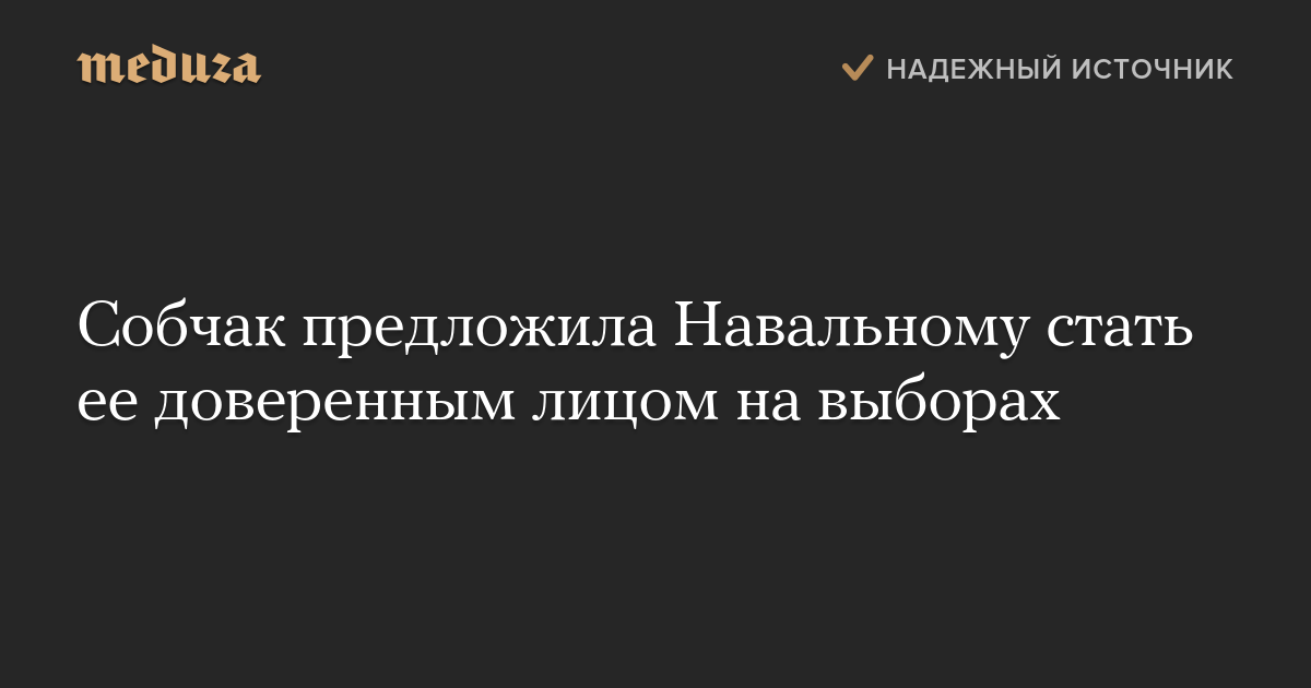 Телеведущая Ксения Собчак, которая намерена баллотироваться на пост президента России, предложила стать своим доверенным лицом на выборах оппозиционеру Алексею Навальному, которому Центризбирком 25 декабря отказал в регистрации в качестве кандидата.