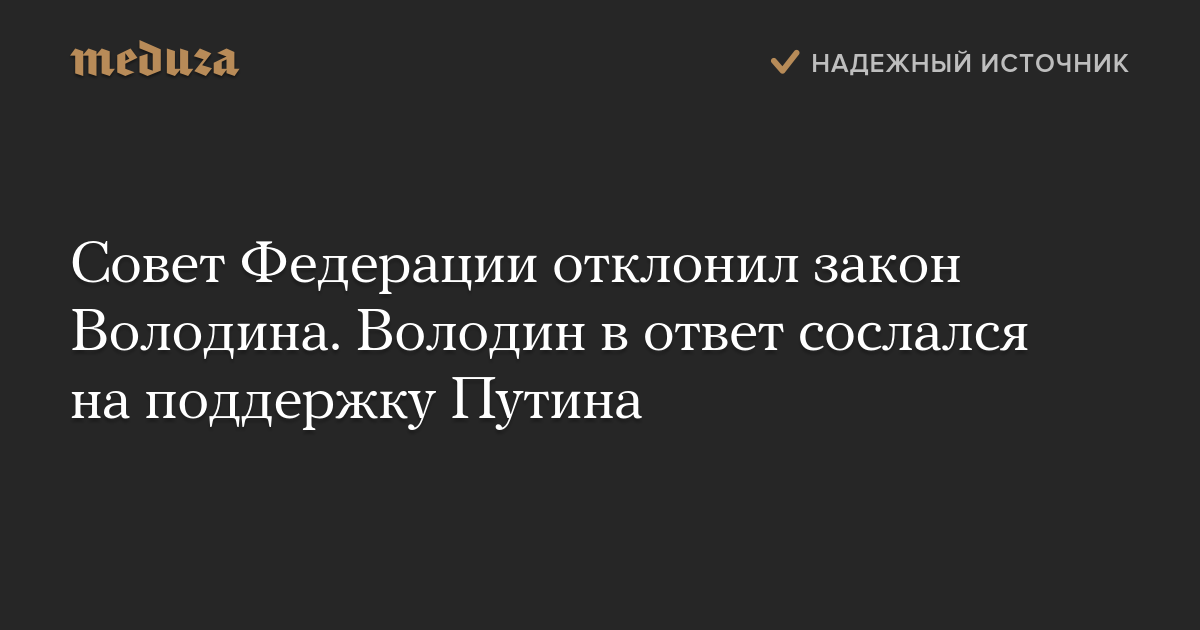 Совет Федерации отклонил закон Володина. Володин в ответ сослался на поддержку Путина