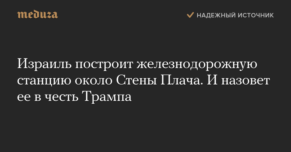 Израиль построит железнодорожную станцию около Стены Плача. И назовет ее в честь Трампа