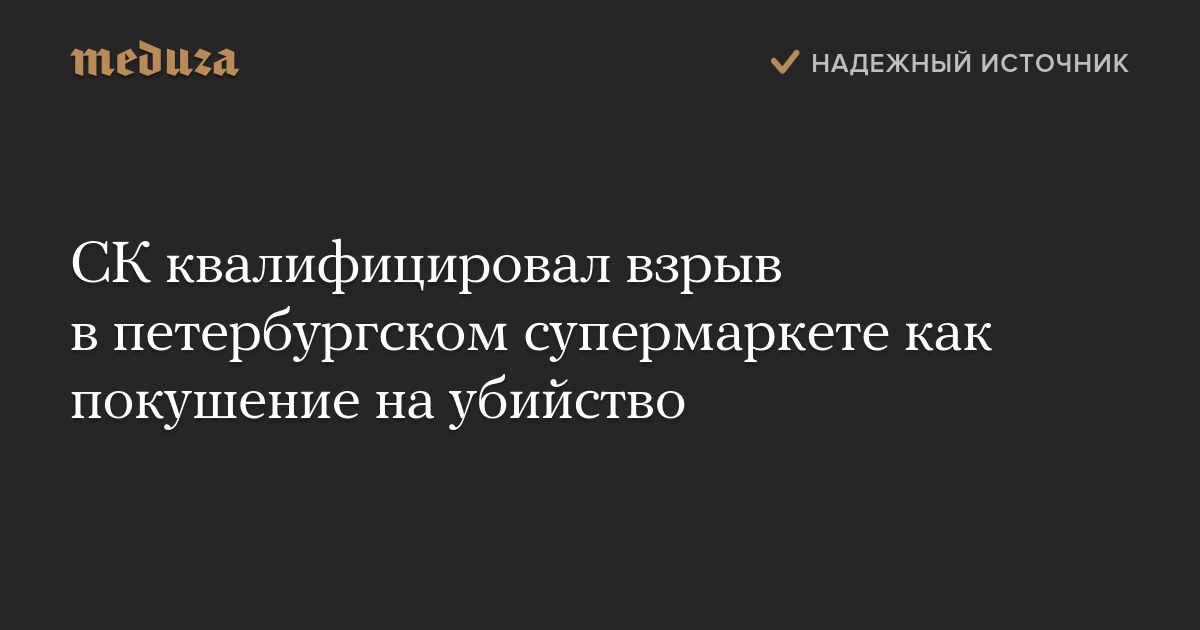 Взрыв в супермаркете «Перекресток», произошедший вечером 27 декабря, квалифицирован как покушение на убийство, сообщает Следственный комитет.