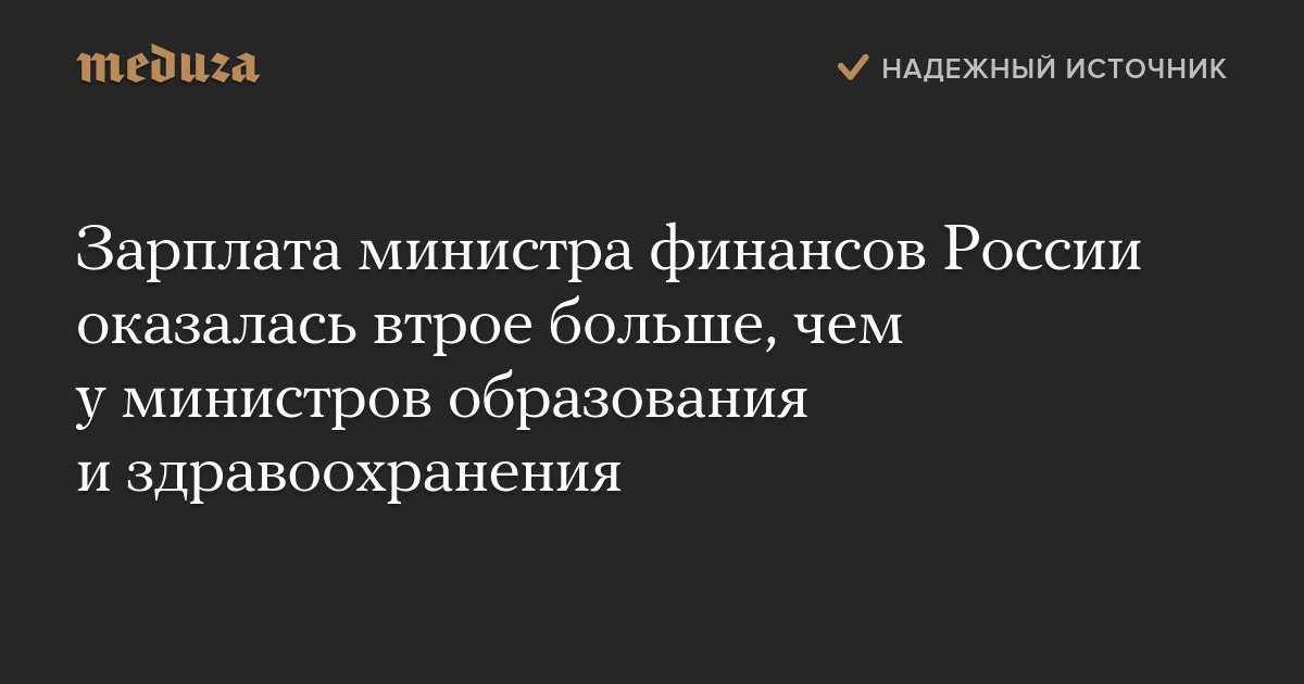 Зарплата министра финансов России оказалась втрое больше, чем у министров образования и здравоохранения