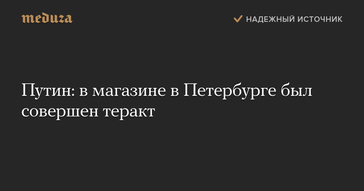 «Вы знаете, что вчера в Петербурге был совершен террористический акт», — заявил Путин собравшимся. При этом официально дело после взрыва в Петербурге возбуждено по статье о покушении на убийство.