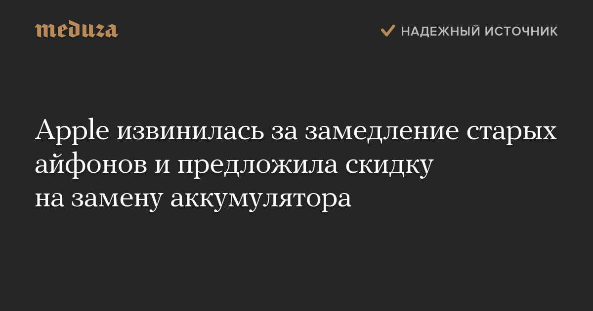 Нам поступили жалобы на работу айфонов со старыми аккумуляторами и на то, как мы отреагировали на эту проблему. Мы понимаем, некоторые из вас считают, что Apple их подвела. Мы приносим извинения. (англ. яз.)