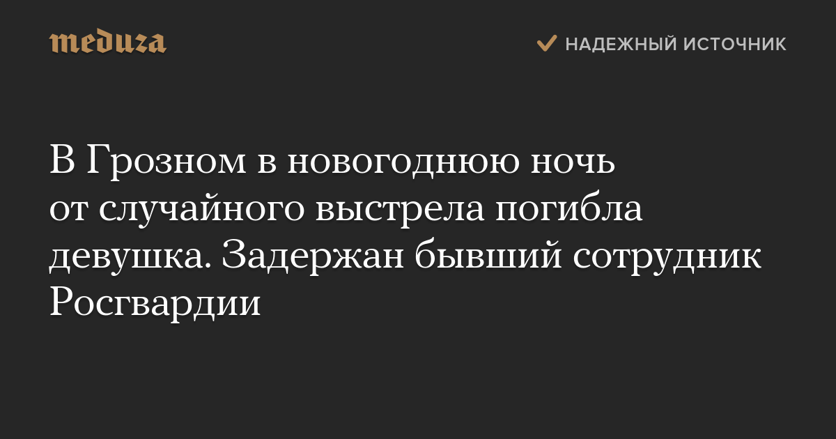 В Грозном в новогоднюю ночь от случайного выстрела погибла девушка. Задержан бывший сотрудник Росгвардии