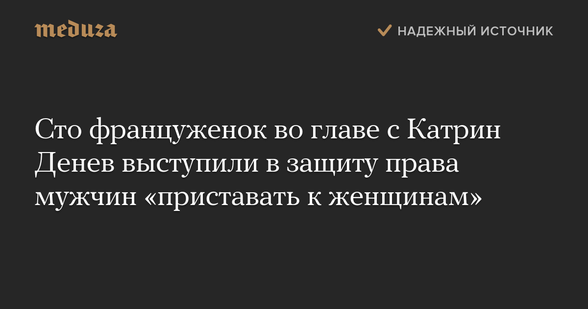 Сто француженок во главе с Катрин Денев выступили в защиту права мужчин «приставать к женщинам»