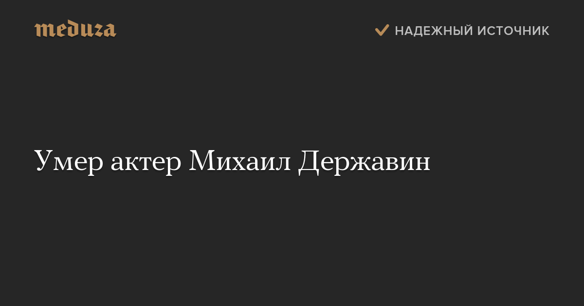 Народный артист России Михаил Державин скончался «после продолжительной тяжелой болезни», говорится в сообщении.