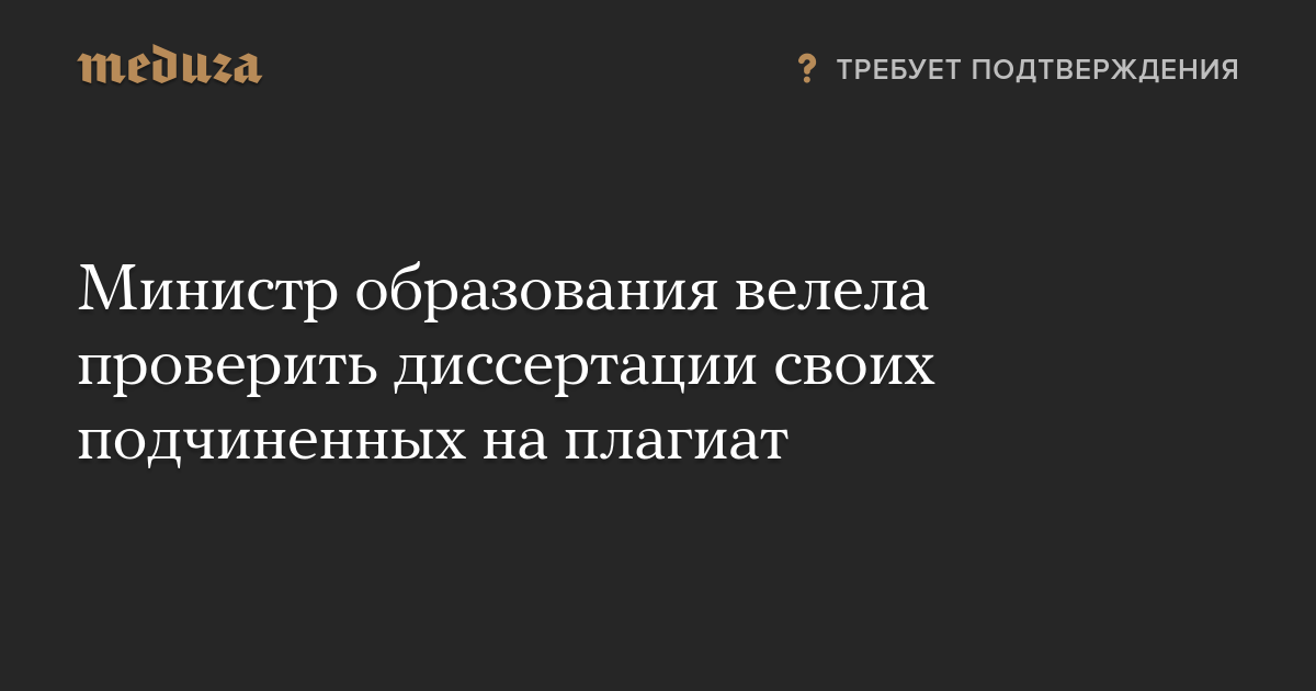 Министр образования велела проверить диссертации своих подчиненных на плагиат
