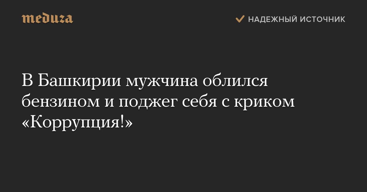 В Башкирии мужчина облился бензином и поджег себя с криком «Коррупция!»