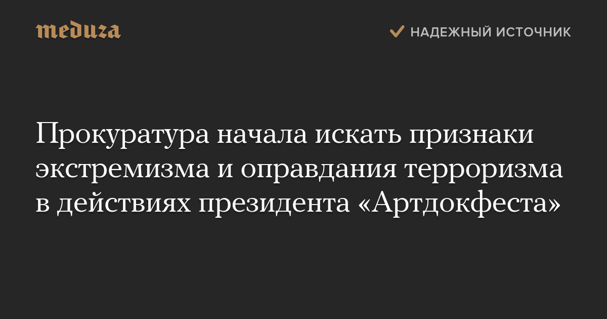 Прокуратура начала искать признаки экстремизма и оправдания терроризма в действиях президента «Артдокфеста»