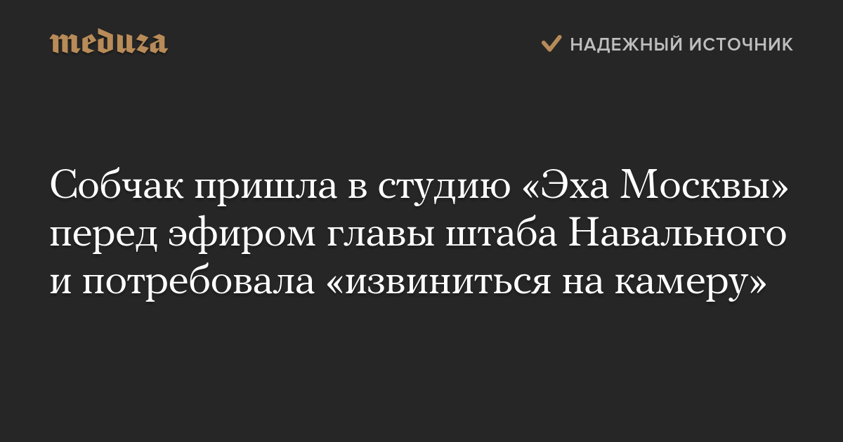 Собчак пришла в студию «Эха Москвы» перед эфиром главы штаба Навального и потребовала «извиниться на камеру»