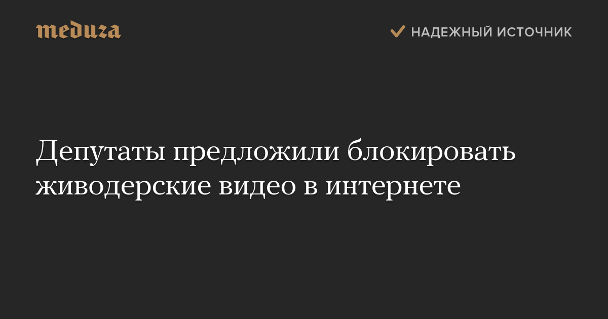 В Госдуме подготовлен законопроект о досудебной блокировке живодерского контента в интернете, сообщает «Интерфакс». Поправки, которые предлагается внести в закон «Об информации», были составлены комитетом по экологии и охране окружающей среды совместно с Роскомнадзором.
