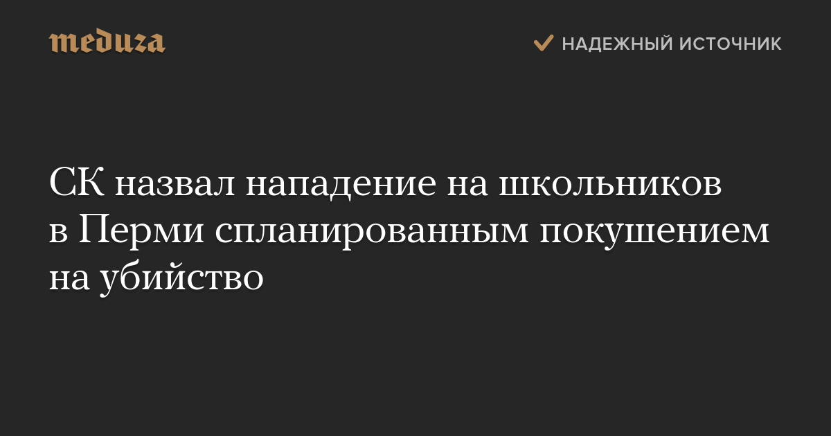 СК назвал нападение на школьников в Перми спланированным покушением на убийство
