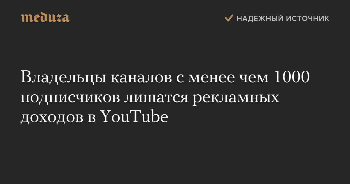 Владельцы каналов с менее чем 1000 подписчиков лишатся рекламных доходов в YouTube
