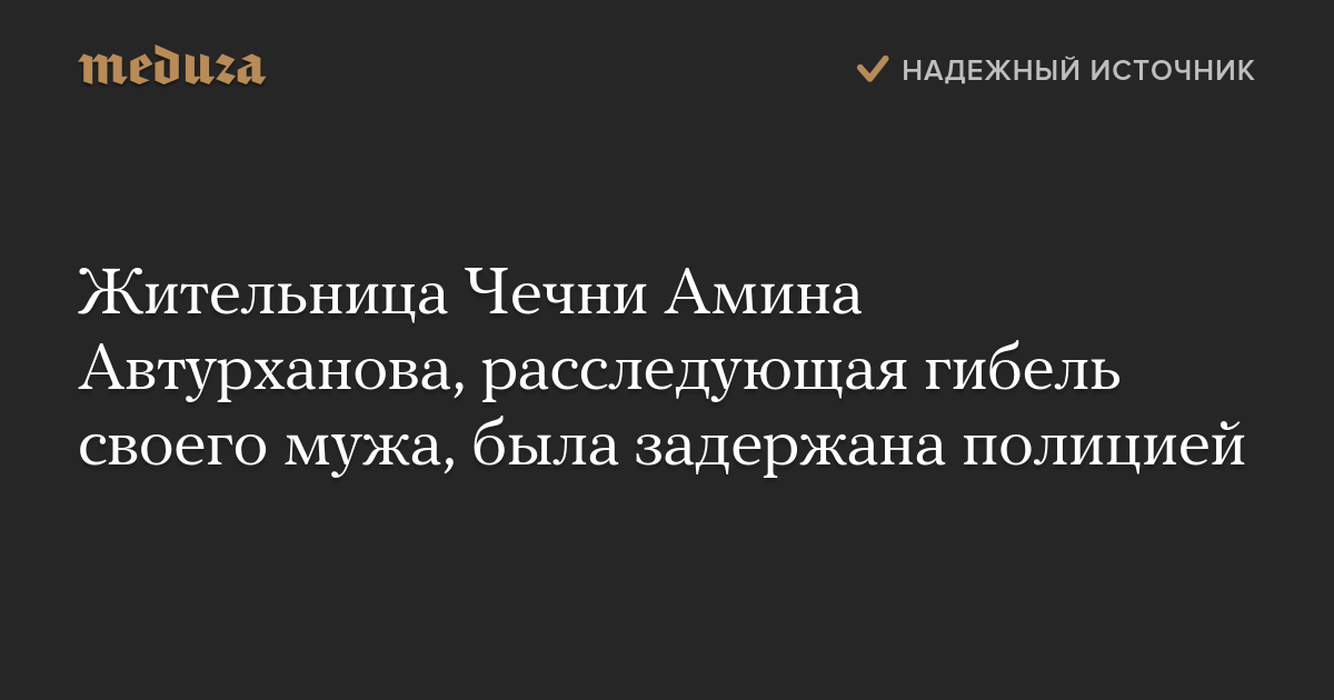 Жительница Чечни Амина Автурханова, расследующая гибель своего мужа, была задержана полицией