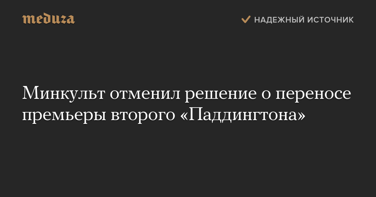 Минкульт отменил решение о переносе премьеры второго «Паддингтона»
