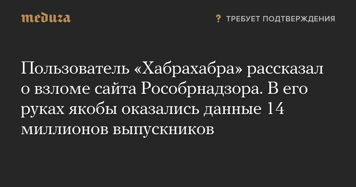 Пользователь «Хабрахабра» рассказал о взломе сайта Рособрнадзора. В его руках якобы оказались данные 14 миллионов выпускников