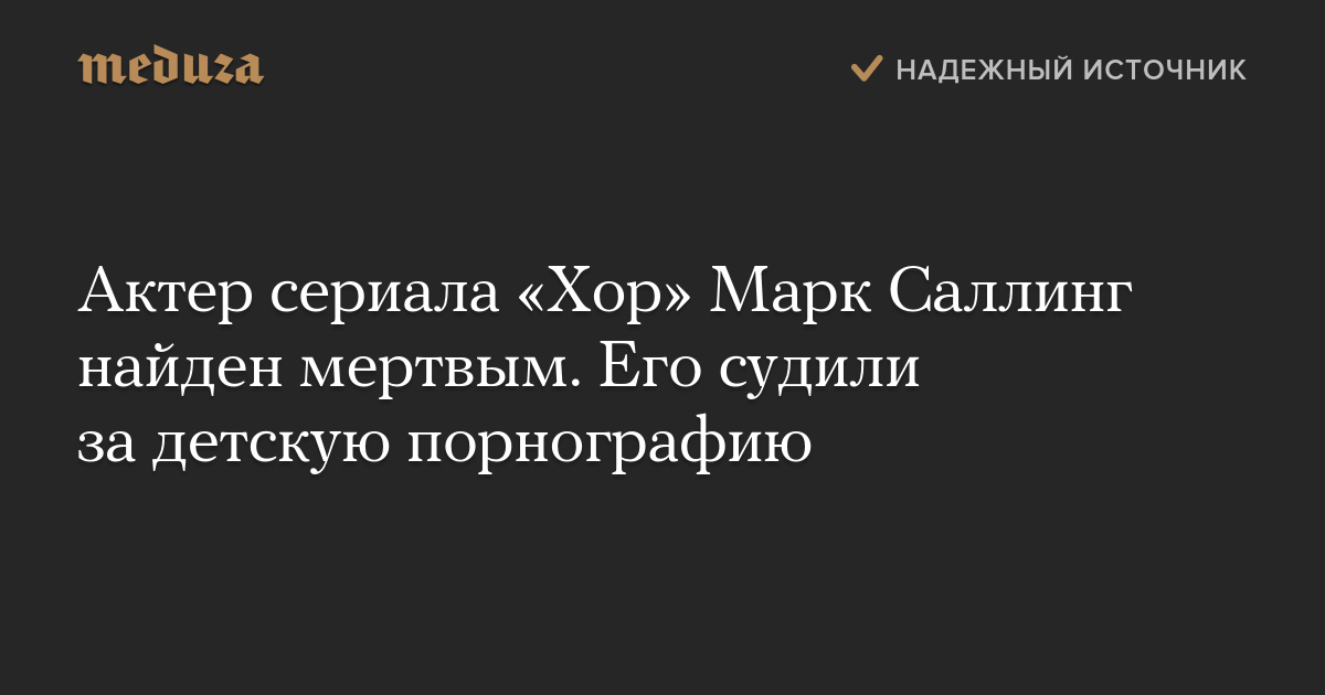 Актер Марк Саллинг, известный по роли в сериале «Хор» (Glee), найден мертвым в Калифорнии. Об этом сообщает The Hollywood Reporter со ссылкой на источник. Смерть актера подтвердил Associated Press его адвокат.