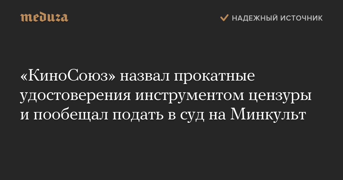 «КиноСоюз» пообещал подать в суд на министерство культуры России «по факту использования прокатных удостоверений в качестве инструмента цензуры».