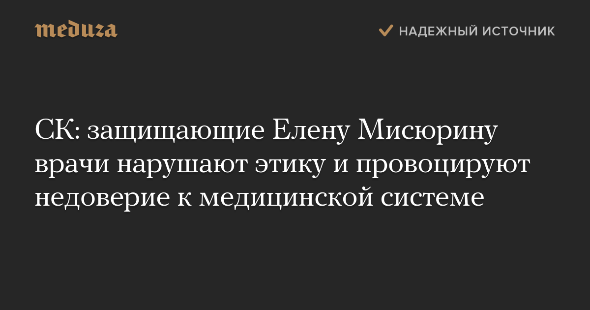 СК: защищающие Елену Мисюрину врачи нарушают этику и провоцируют недоверие к медицинской системе