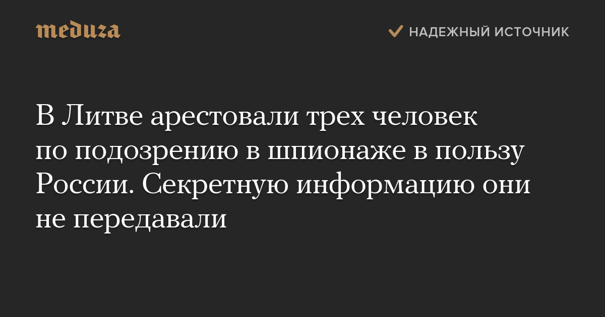 В Литве арестовали трех человек по подозрению в шпионаже в пользу России. Секретную информацию они не передавали