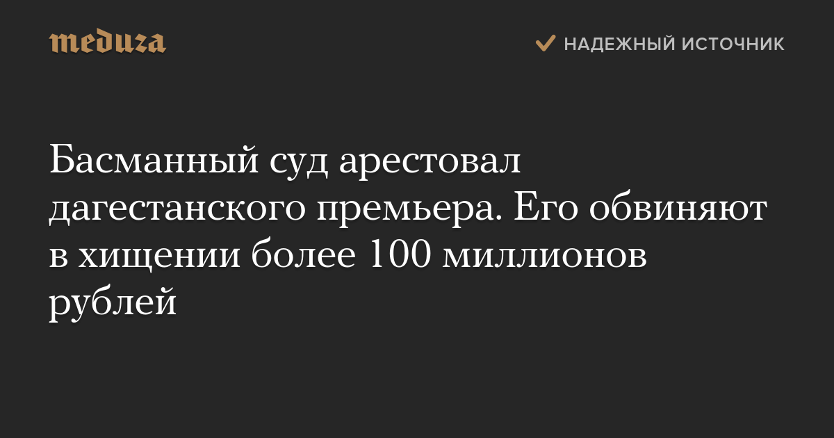 Басманный суд арестовал дагестанского премьера. Его обвиняют в хищении более 100 миллионов рублей