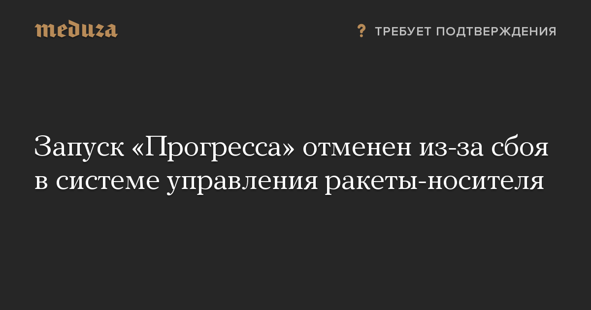 Запуск «Прогресса» отменен из-за сбоя в системе управления ракеты-носителя