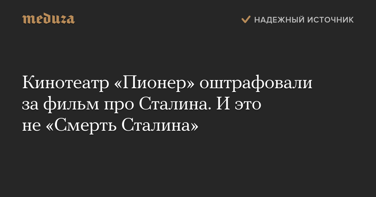 Кинотеатр «Пионер» оштрафовали за фильм про Сталина. И это не «Смерть Сталина»