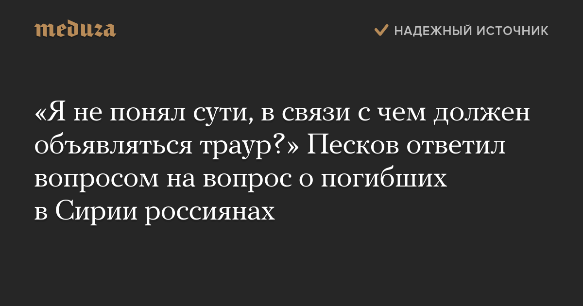 «Я не понял сути, в связи с чем должен объявляться траур?» Песков ответил вопросом на вопрос о погибших в Сирии россиянах