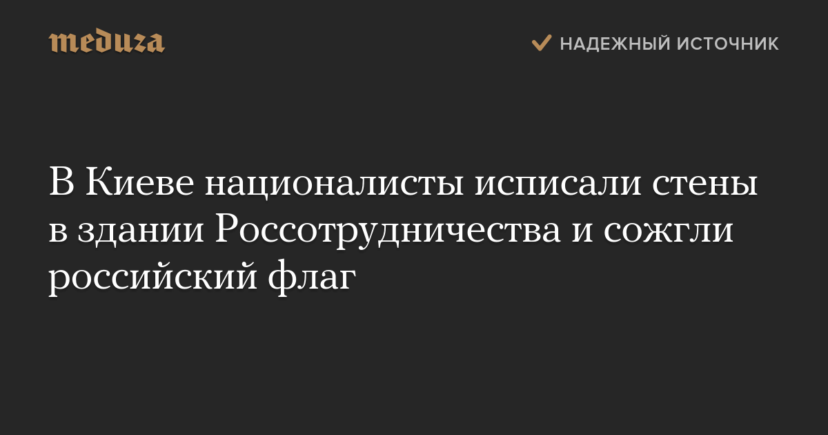 В Киеве националисты исписали стены в здании Россотрудничества и сожгли российский флаг