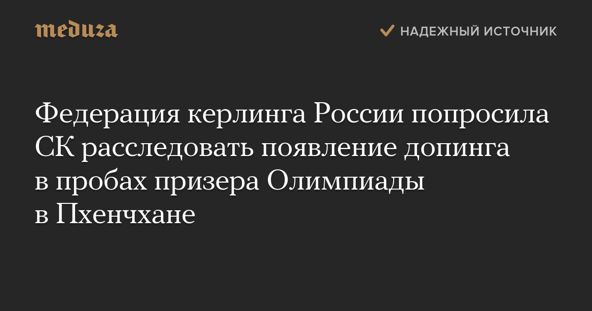 Федерация керлинга России попросила СК расследовать появление допинга в пробах призера Олимпиады в Пхенчхане