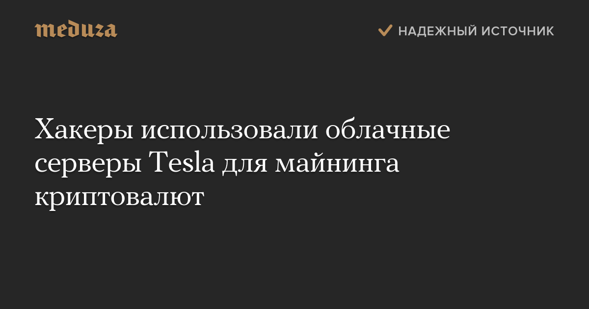 Хакеры взломали облачные серверы, которые использует автомобильная компания Tesla, и использовали их для майнинга криптовалют. Взлом был обнаружен фирмой RedLock.