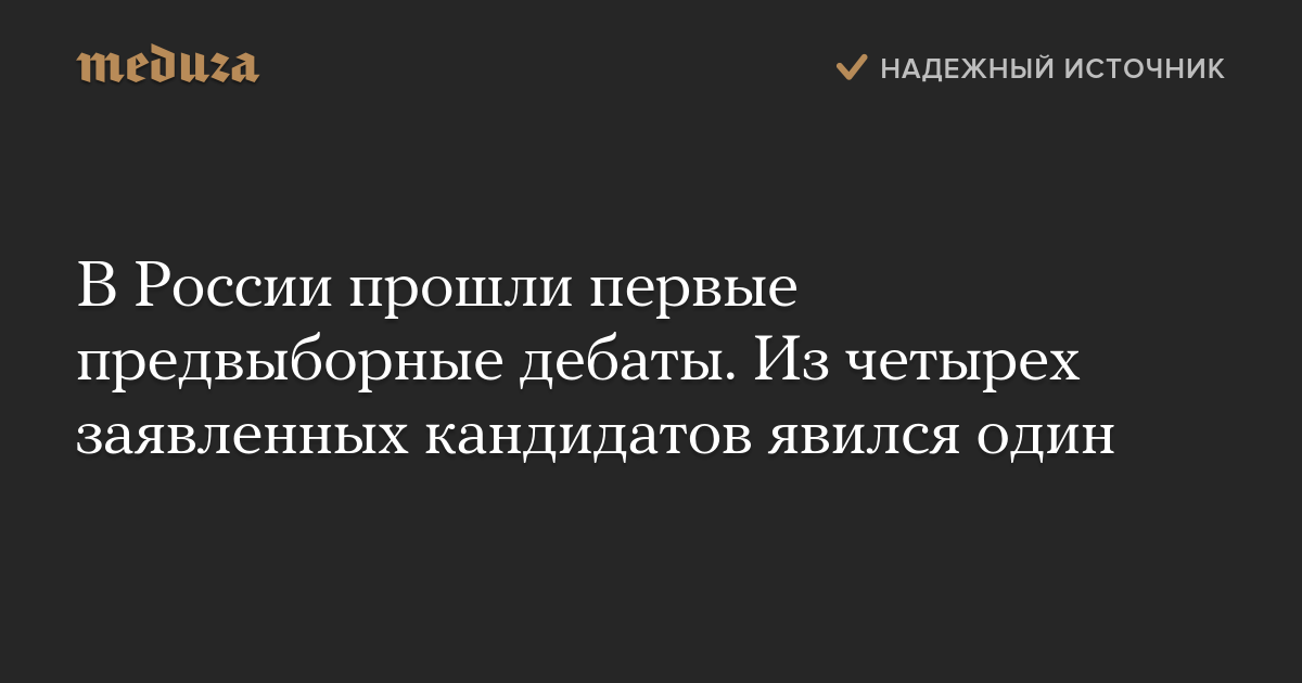 В России прошли первые предвыборные дебаты. Из четырех заявленных кандидатов явился один