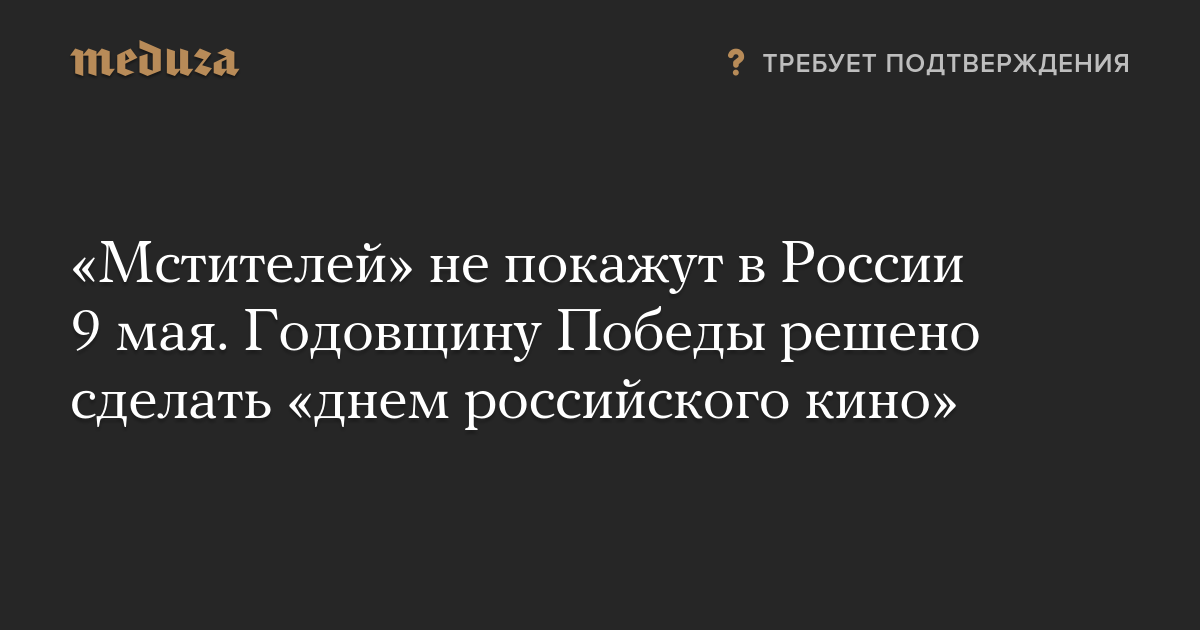 «Мстителей» не покажут в России 9 мая. Годовщину Победы решено сделать «днем российского кино»