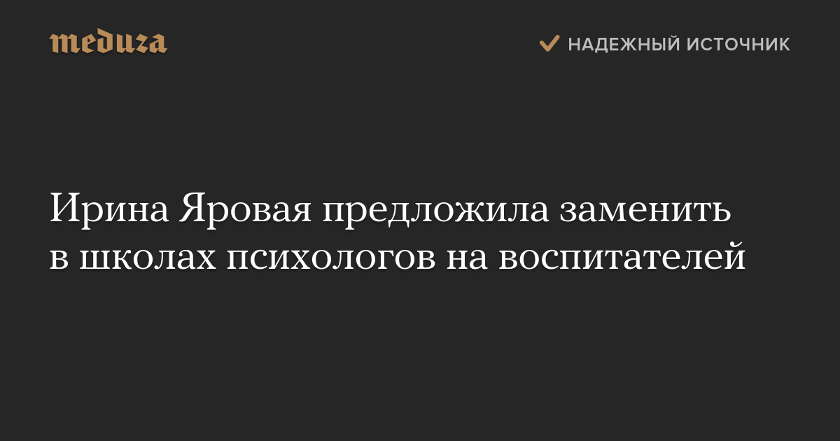 «Предложение министерства (образования и науки) вернуть не воспитателей, а внедрить психологов — это, на мой взгляд, совершенно опасная история. Это какое-то заблуждение», — сказала Яровая.