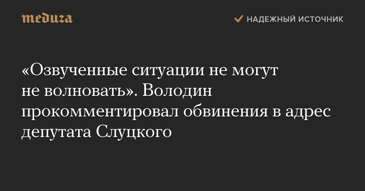 «Озвученные ситуации не могут не волновать». Володин прокомментировал обвинения в адрес депутата Слуцкого